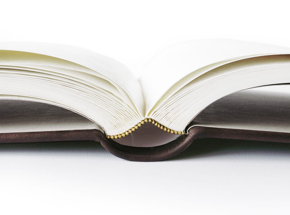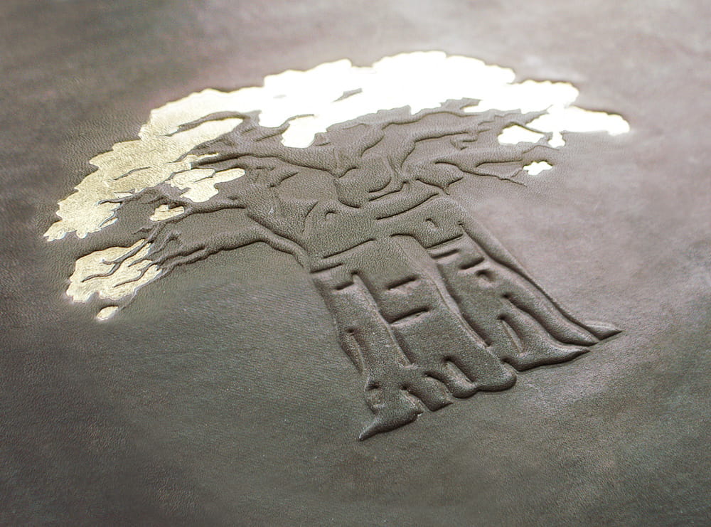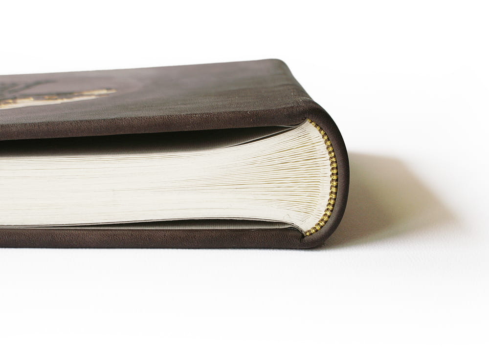 Ručně šitá celokožená vazba, kulacený hřbet, šitý kapitálek. Album je v celku potažené hovězinou tmavě hnědé barvy a impregnované olejem na kůži. Přední deska je zdobená reliéfem baobabu a ručním zlacením koruny stromu. Na blok knihy je použitý krémový grafický kartón a prokladové pavučinkové papíry.