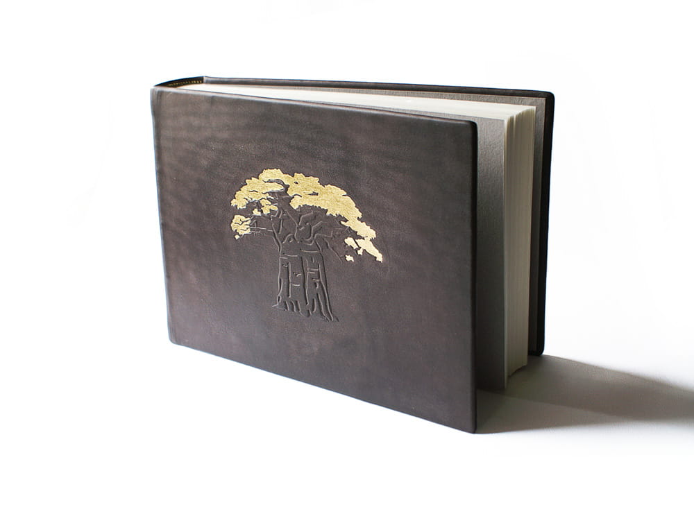Kožené album Baobab, monumentální strom, v jehož majestátnosti se rozplývá lidská velikost i plynutí času. Tento strom je ústředním motivem alba a společně s ručním zpracováním a uměleckým provedením dodává nevšední exkluzivitu koženého provedení.