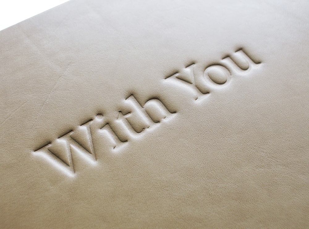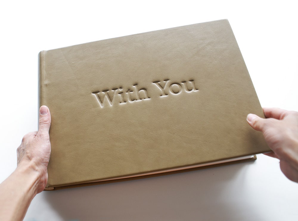 Kožené album With You vyrobené na zakázku. Hřbet alba má zapuštěné vazy a hladký, kulacený hřbet. Na deskách je na zakázku vyražen titul „With You“.